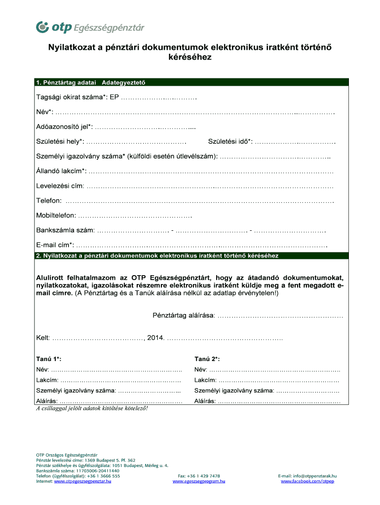 Get the free Nyilatkozat a pnztri dokumentumok elektronikus iratknt - otppenztarak