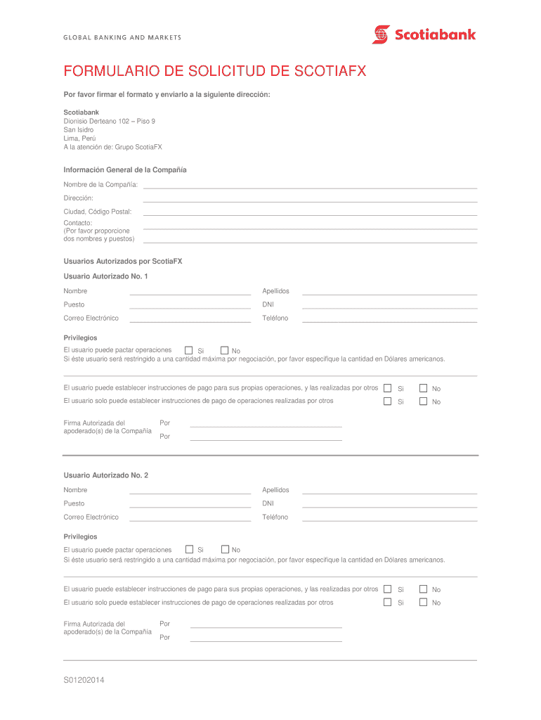 Obtener el gratis FORMULARIO DE SOLICITUD DE SCOTIAFX - Peru