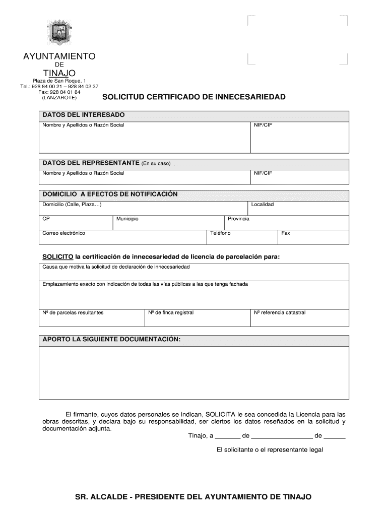 Get the free SOLICITUD certificado innecesariedaddoc - tinajo