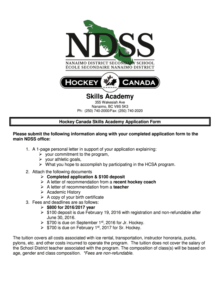 Skills Academy 355 Wakes Ave Nanaimo, BC V9S 5K3 pH: (250) 7402000/Fax: (250) 7402020 Hockey Canada Skills Academy Application Form Please submit the following information along with your completed