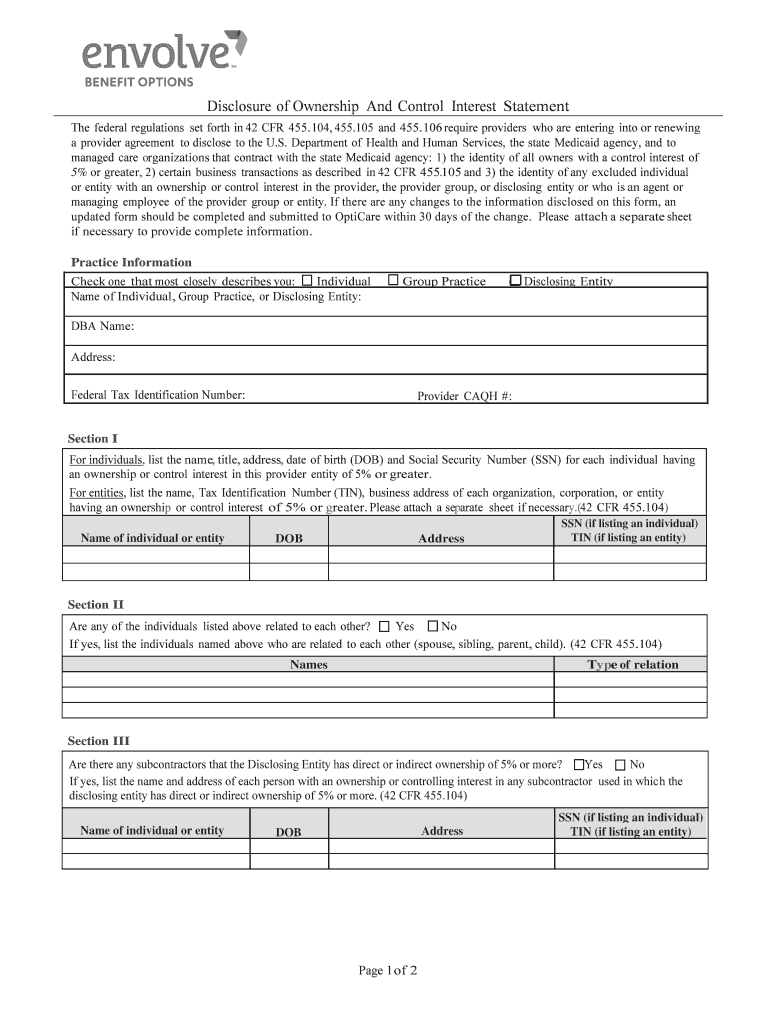 The Disclosure of Ownership and Control Interest Form is required of all contracted offices (one per tax