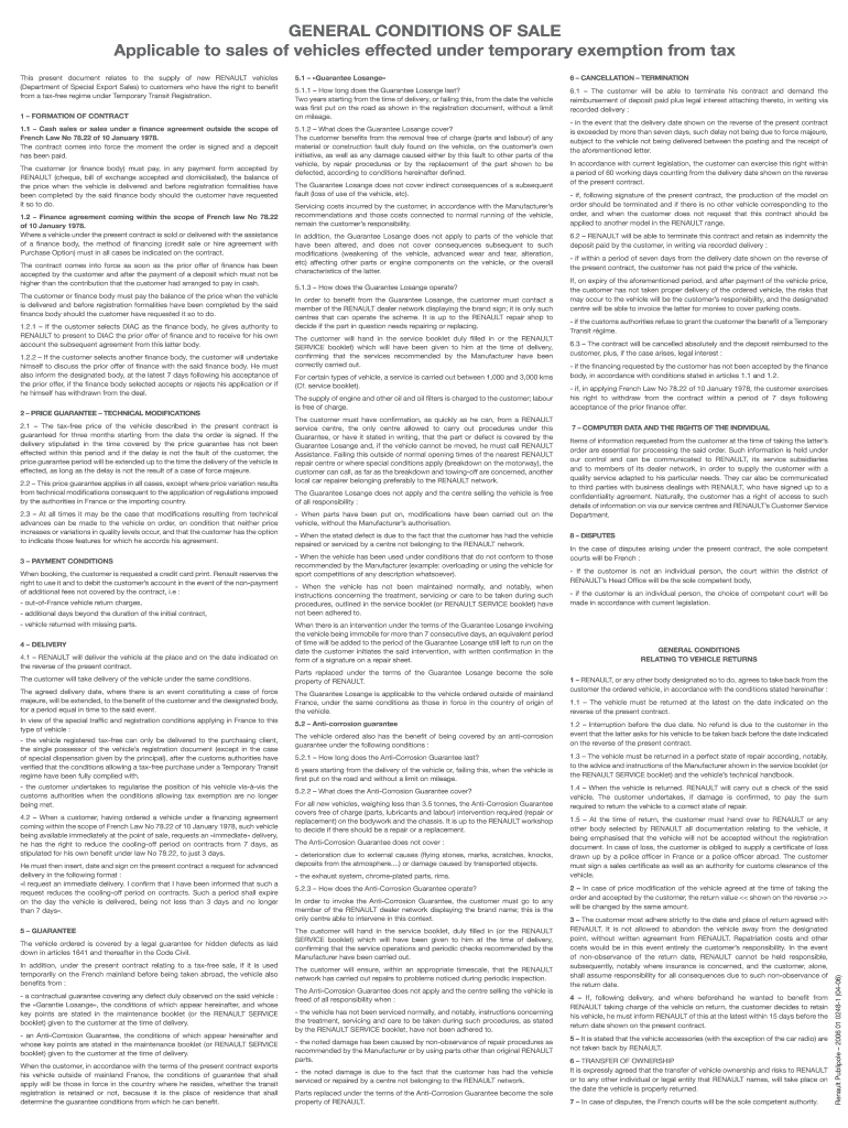 GENERAL CONDITIONS OF SALE Applicable to sales of vehicles effected under temporary exemption from tax 1 FORMATION OF CONTRACT 1.1 Cash sales or sales under a dance agreement outside the scope of