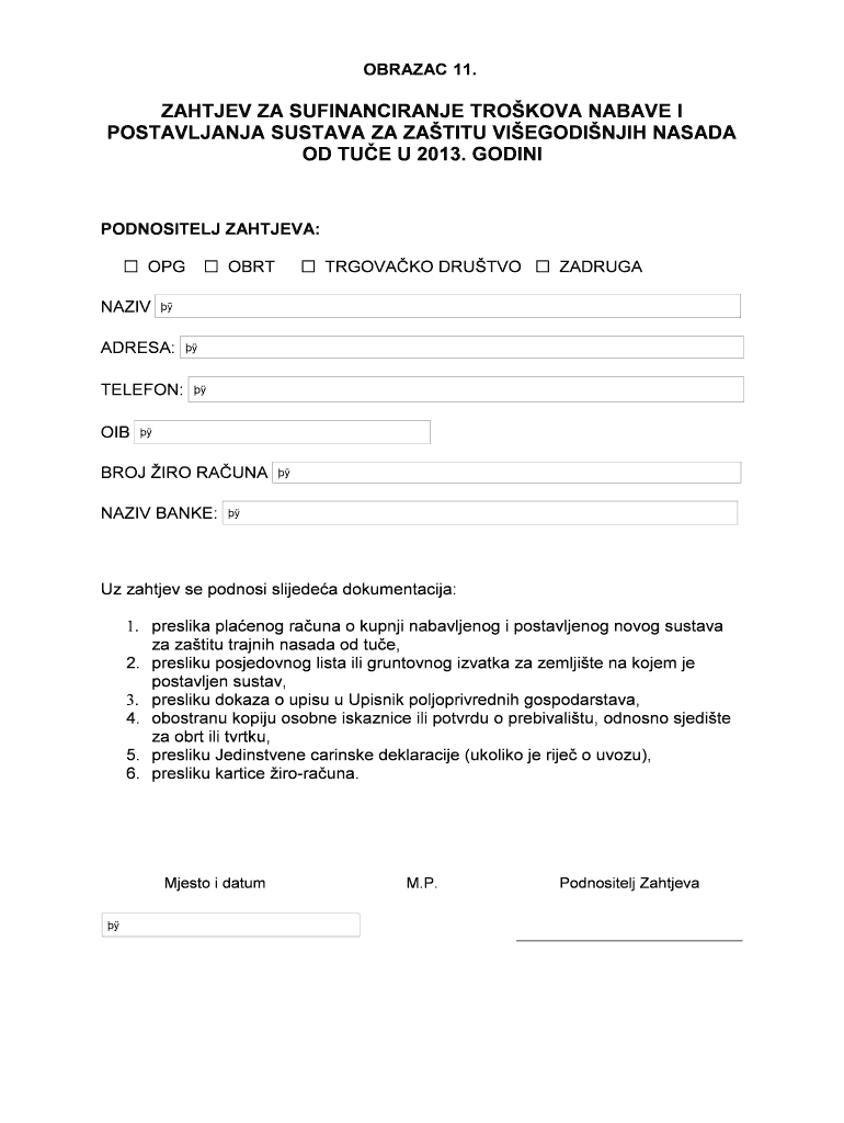 Individuals or organizations eligible for co-financing are required to file zahtjev za sufinanciranje trokova.