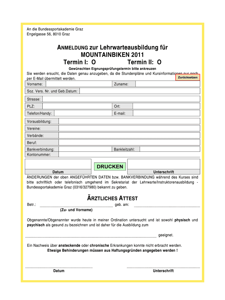 Suchen Sie nach dem entsprechenden Formular für die Ausschreibung zur Instruktorenausbildung.