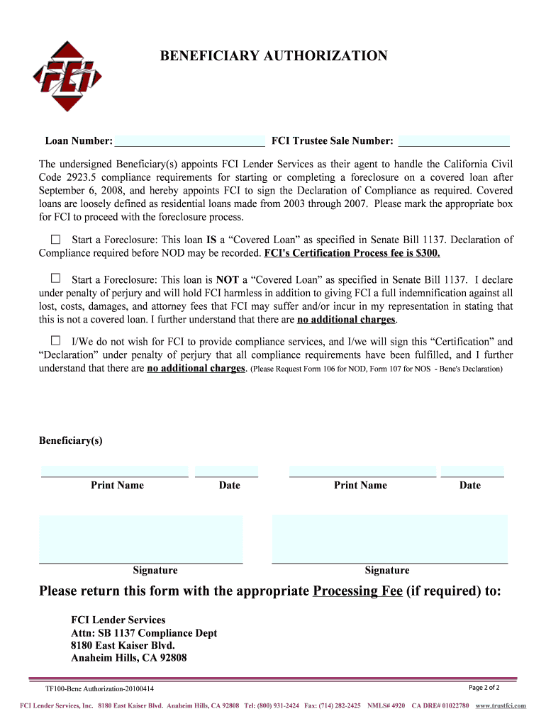 Get the free Beneficiary Authorization