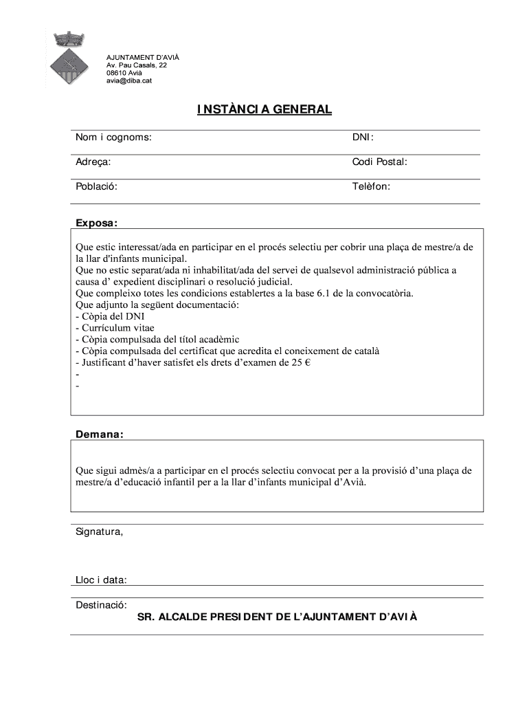 Get the free INSTNCIA PLAA GUARDERIA - avia