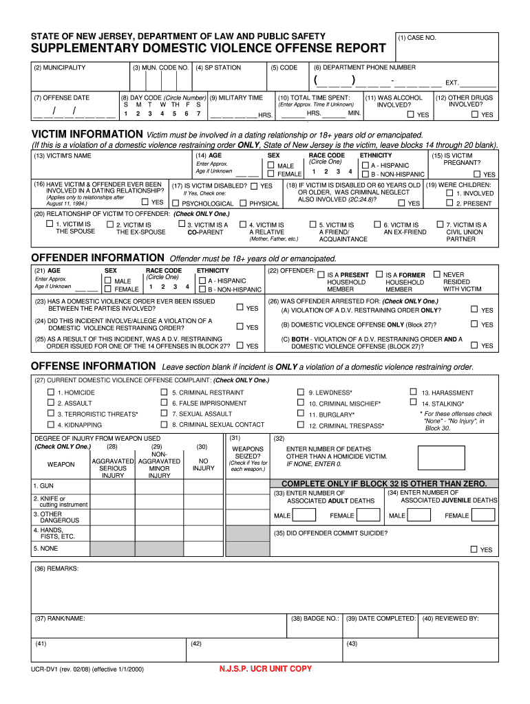 SUPPLEMENTARY DOMESTIC VIOLENCE OFFENSE REPORT. (5) CODE. (2) MUNICIPALITY .... DO NOT wait for the end of the month to forward the forms.