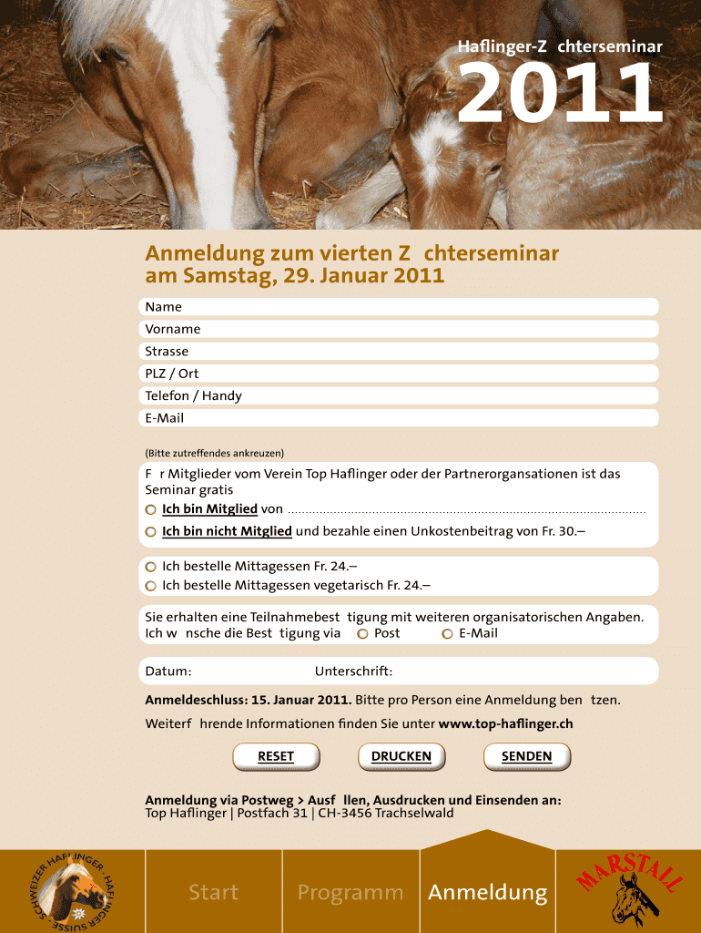 2011Haflinger-Z chterseminar Amending sum hearten Z chterseminar am Sam stag, 29. January 2011 Name Surname Stress PLY / ORT Telephone / Handy E-Mail.