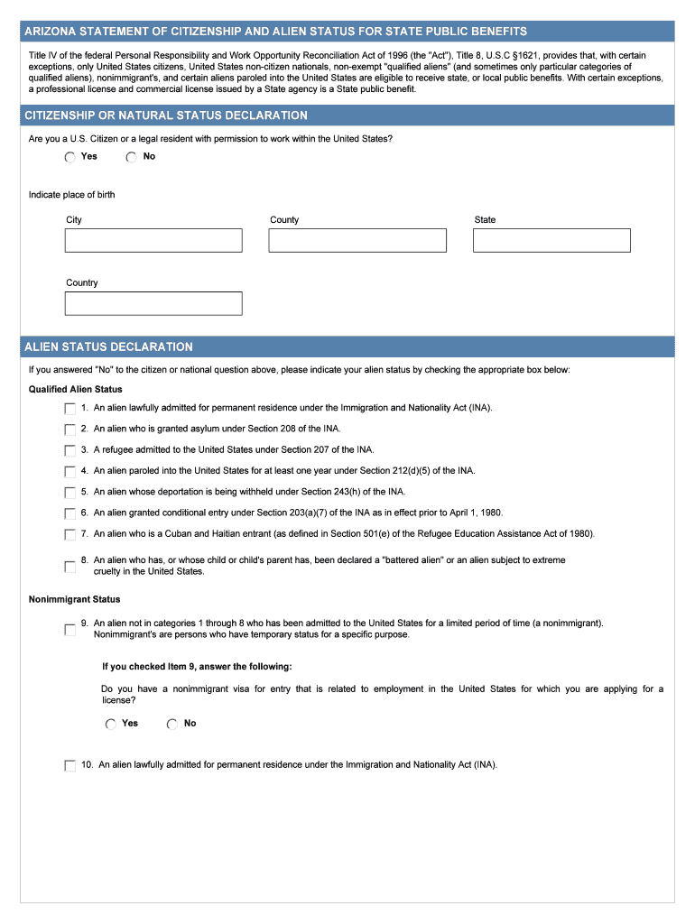 Fee To: Application for Pharmacy Intern Licensure ... An alien lawfully admitted for permanent residence under the Immigration and Nationality Act (INA). 9.