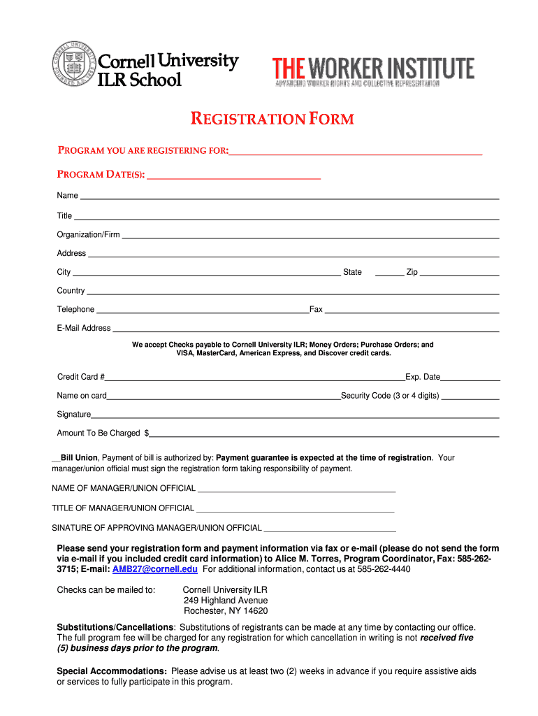 Get the free REGISTRATION FORM - ilr cornell