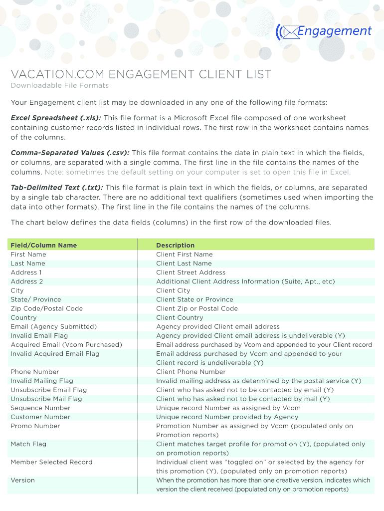 Your Engagement client list may be downloaded in any one of the following file formats: