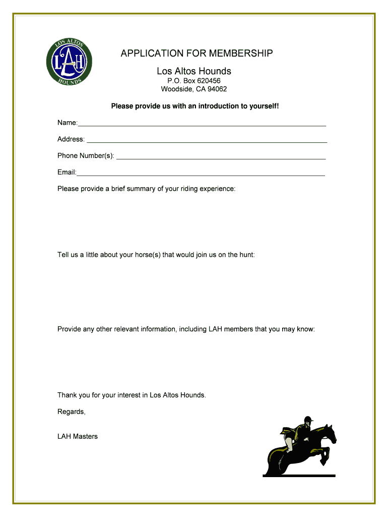 Get the free LAH Membership Application1 - losaltoshounds