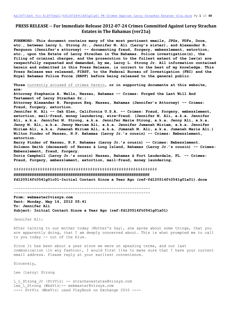 Aa120713a01 Viz A120724a21/fd120724ft1601g21a01 PR Crimes Against Leroy Astrakhan Estates v21a.docx Pg 1 of 68 PRESS RELEASE For Immediate Release 20120724 Crimes Committed Against Leroy Astrakhan