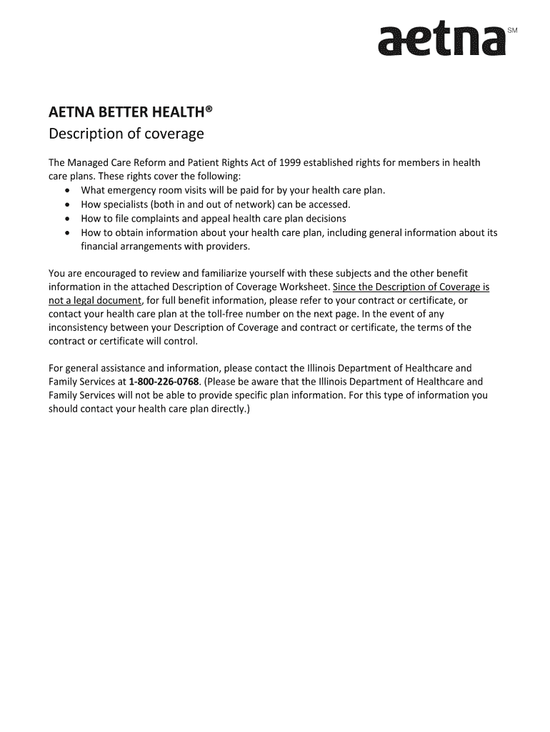 AETNA BETTER HEALTH Description of coverage The Managed Care Reform and Patient Rights Act of 1999 established rights for members in health care plans. These rights cover the following: What emergency