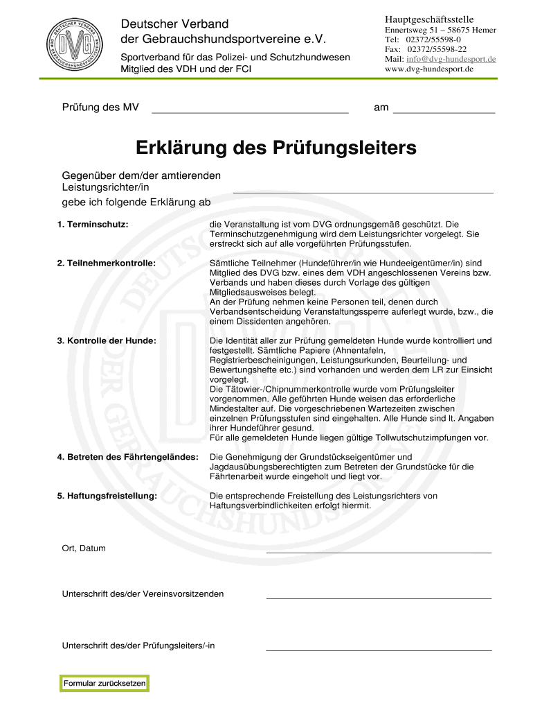 Holen Sie sich kostenlos Erklrung des Prfungsleiters - DVG - dvg-hundesport