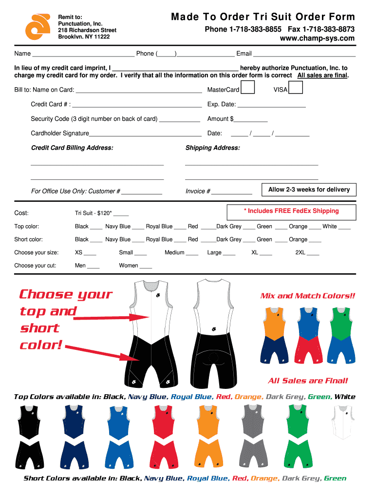 I verify that all the information on this order form is correct All sales are final. Bill to : Name ... I want to order white Speed Time Trial Gloves for $30: Small Medium Large XL ... Made to Order