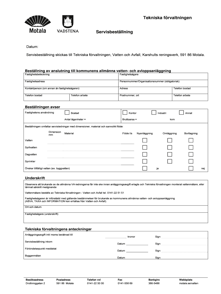 How to fill out tekniska frvaltningen servisbestllning?