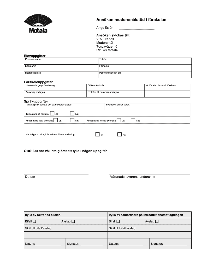 Anskan modersmlstd i frskolan can be filled out online or submitted in person at the preschool or education department.