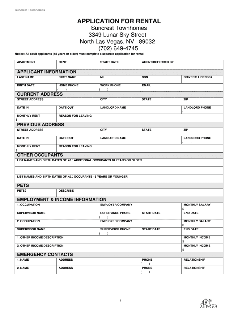 Get the free APPLICATION FOR RENTAL Suncrest Townhomes 3349 Lunar Sky