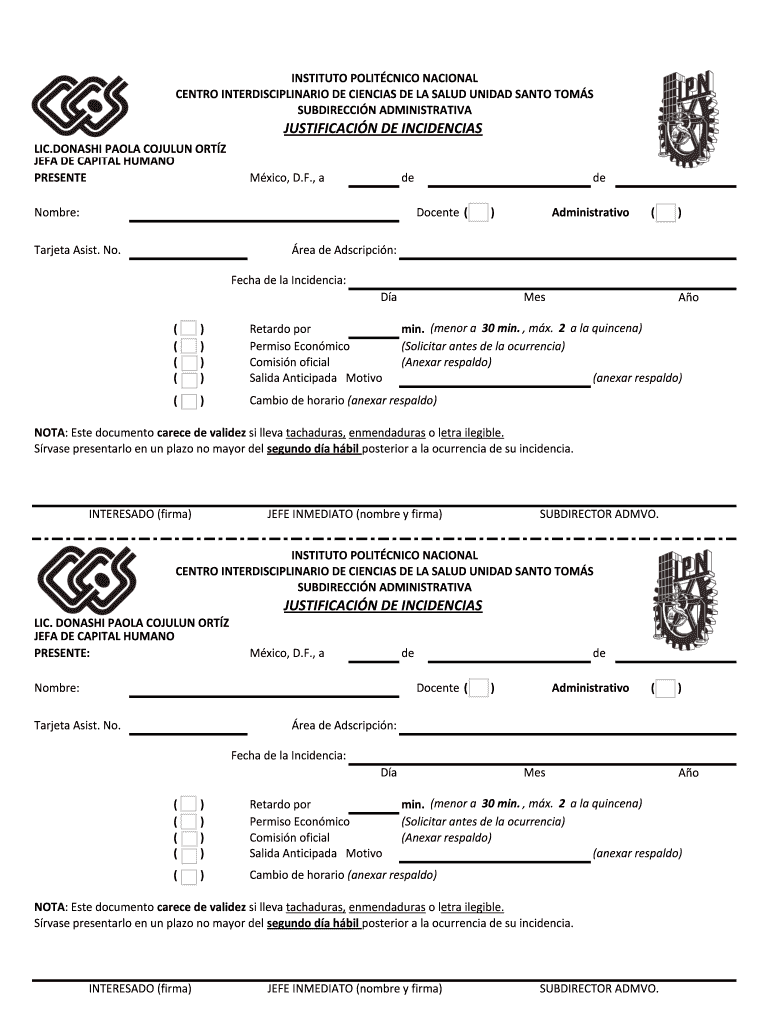 M Xico, D.F., a DE Hombre: () Administrative () Target Assist. No. An o () Retard POR min. (minor a 30 min. ...