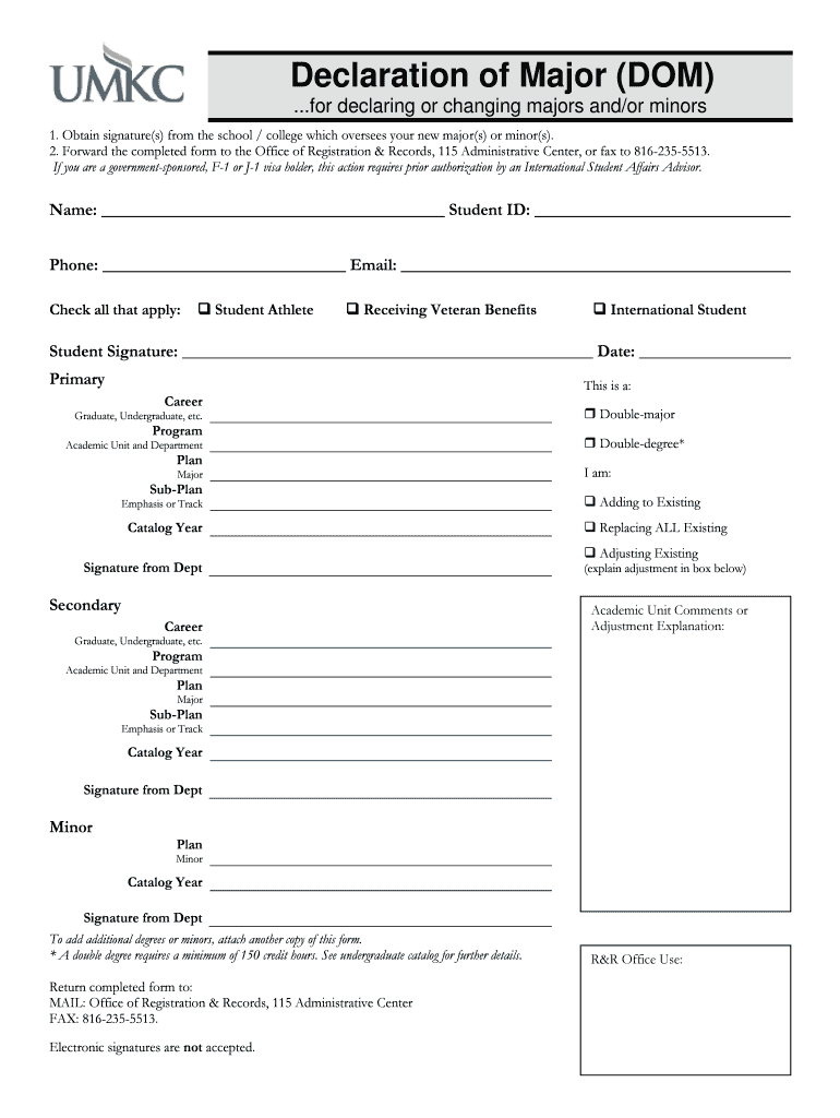 Get the free Declaration of Major (DOM) - umkc