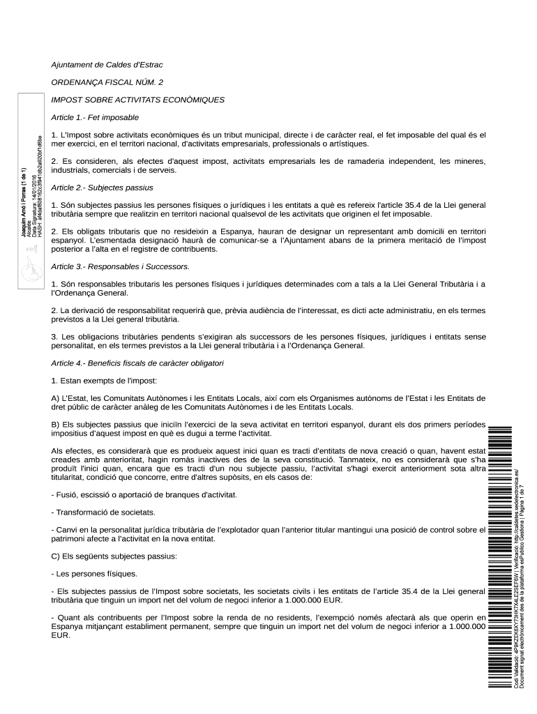 Get the free 2 IMPOST SOBRE ACTIVITATS ECON MIQUES Article 1 - caldetes