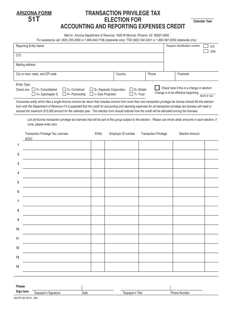 List all Arizona transaction privilege tax licenses that will be part of this group subject to ... Mail to: Arizona Department of Revenue, 1600 W Monroe, Phoenix AZ ...