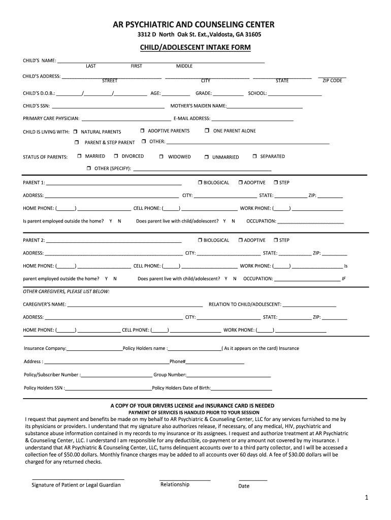 Get the free Patient Forms for the New Patient - AR Psychiatric And Counseling ...