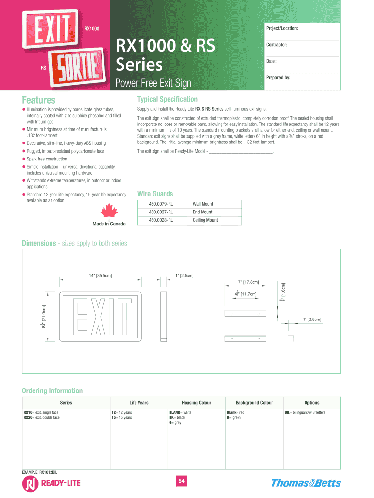 Title: RL RX1000 RS Author: Ready-Lite Subject: RX1000 & RS Series Power Free Exit Sign Keywords: Ready-Lite; Thomas & Beats; RX1000; RS; Series; Power; Free; Exit; Sign