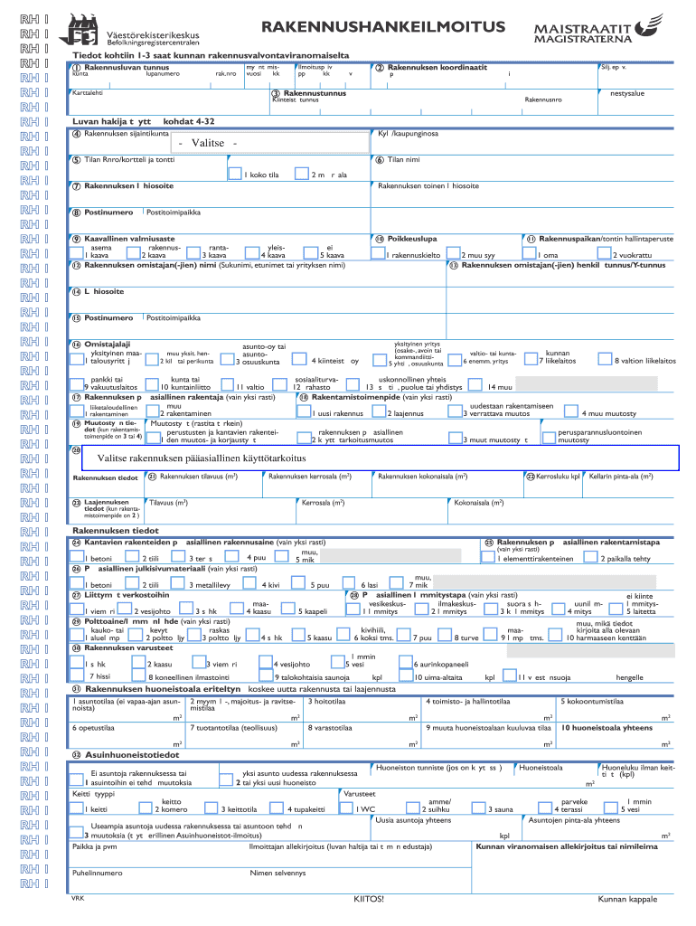 Get the free Rakennushankeilmoitus t ytet n haettaessa rakennuslupaa rakennuksen rakentamiseen, s...