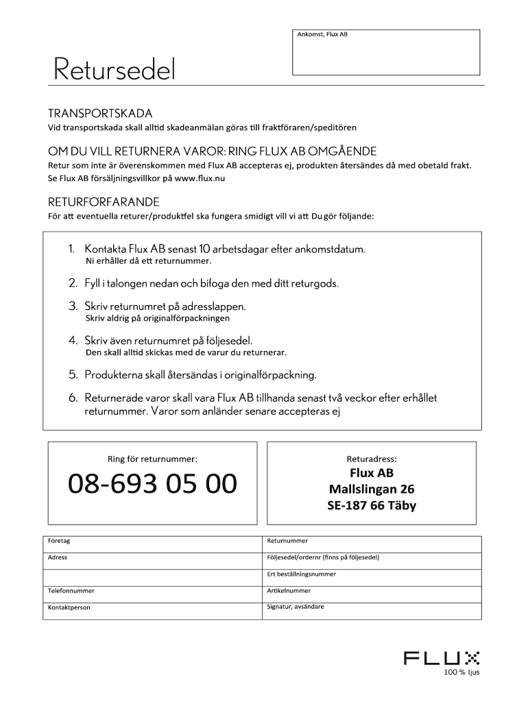 Get the free Retursedel - Flux AB - flux