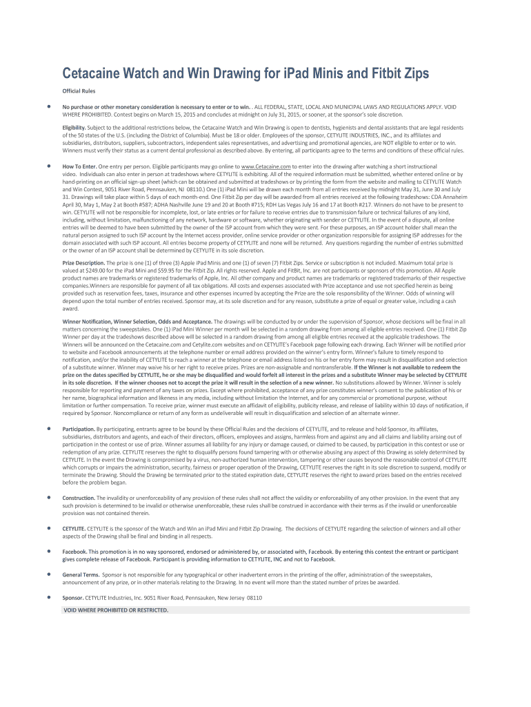 Tetracaine Watch and Win Drawing for iPad Minis and Fitbit Zips Official Rules No purchase or other monetary consideration is necessary to enter or to win. . ALL FEDERAL, STATE, LOCAL AND MUNICIPAL