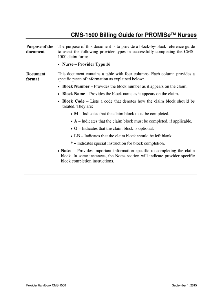 CMS1500 Billing Guide for Promise Nurses Purpose of the document The purpose of this document is to provide a blockbyblock reference guide to assist the following provider types in successfully completing