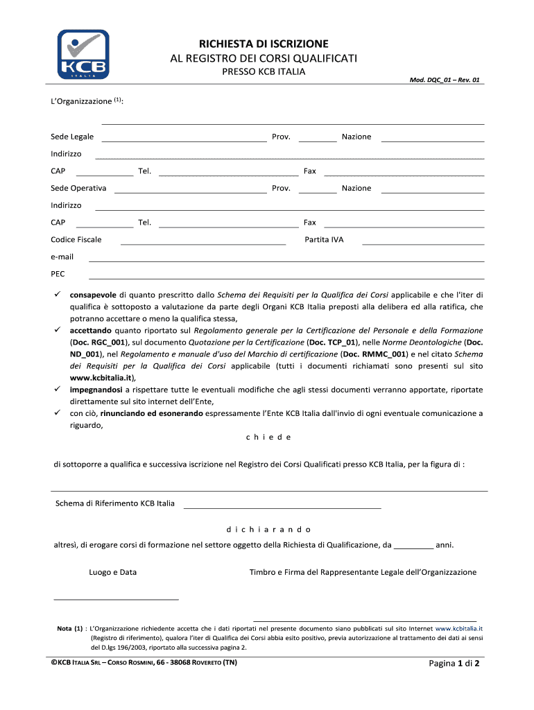 Ottieni il gratuito RICHIESTA DI ISCRIZIONE AL REGISTRO DEI CORSI QUALIFICATI - kcbitalia