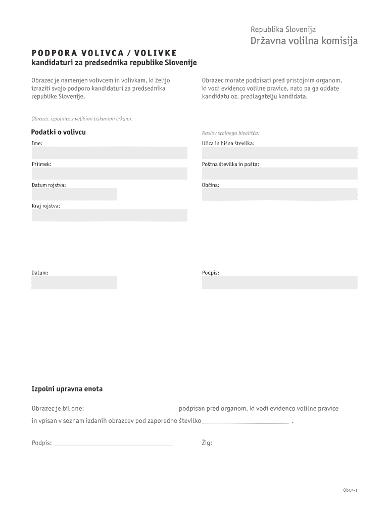 Get the free Podpora volivca kandidaturi za predsednika republike Slovenije - dvk-rs