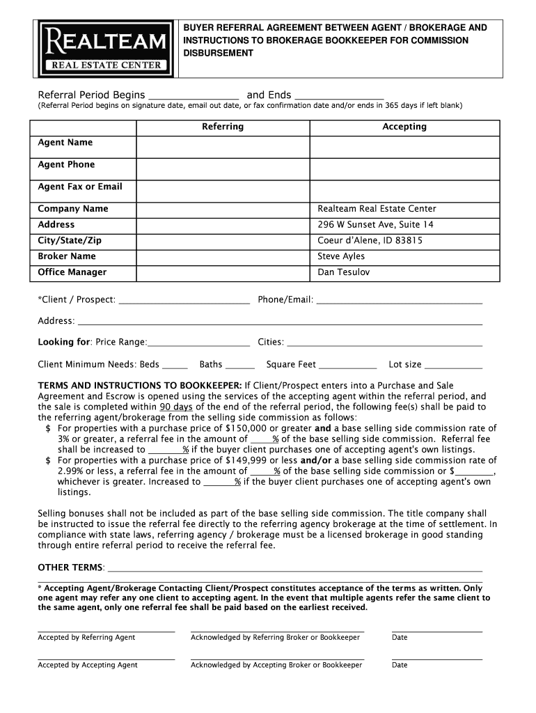 Get the free Breferral agreementb between agents and instruction to bookkeeper