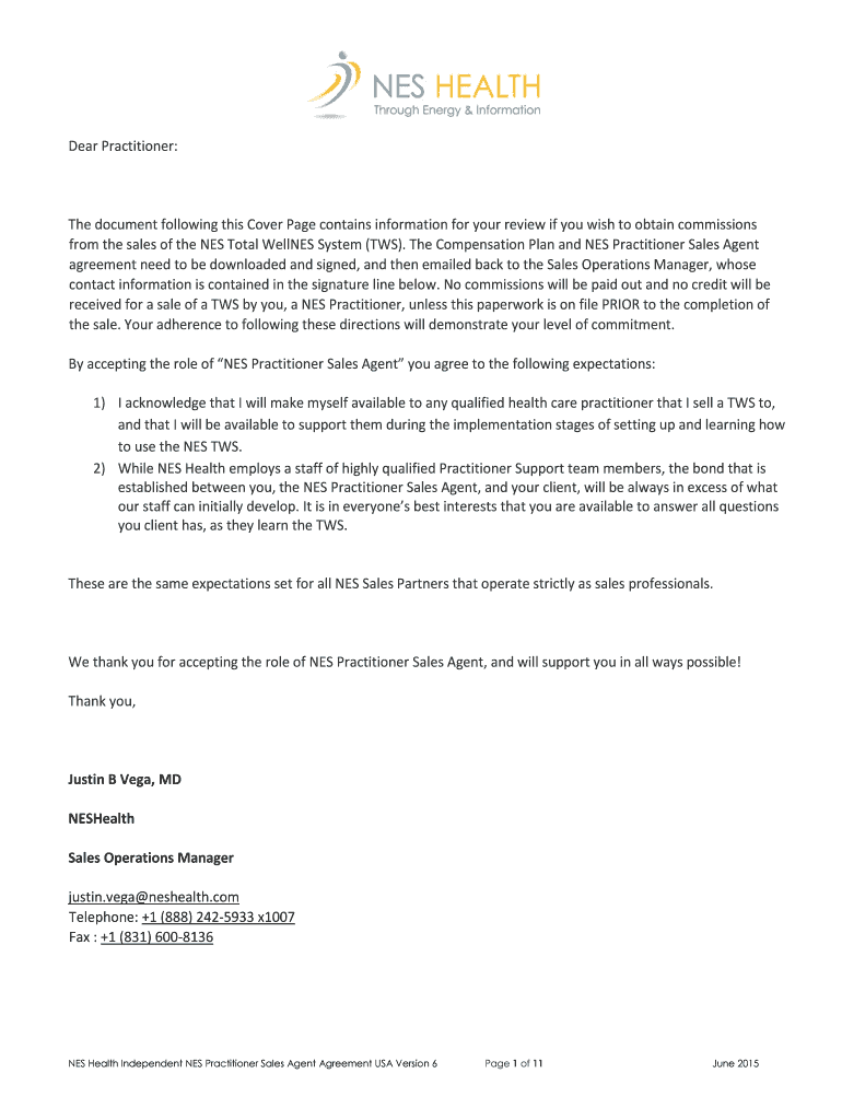 Get the free NES Independent SALES AGENT AGREEMENT USA Version 4 - February 2015docx