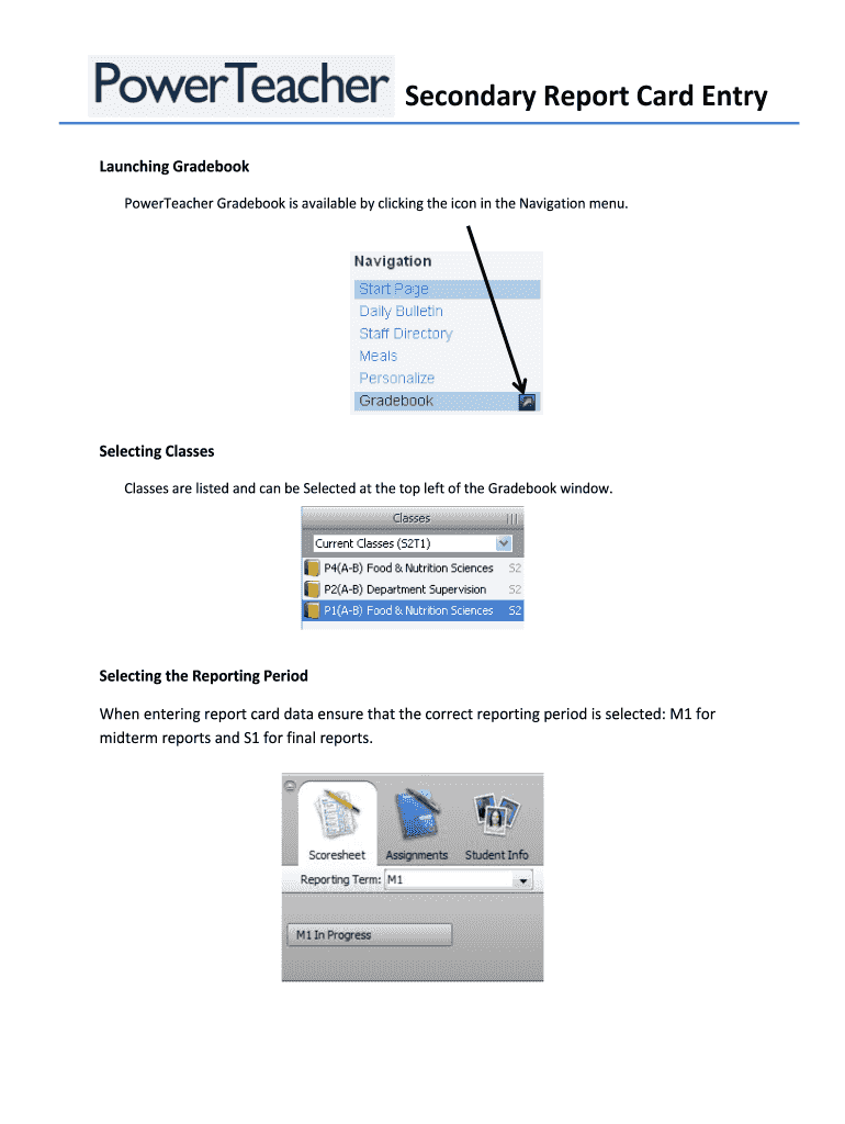 How to fill out secondary report card entry: