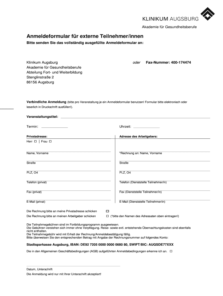 Holen Sie sich kostenlos Anmeldeformular fr externe Teilnehmerinnen - www3 klinikum-augsburg