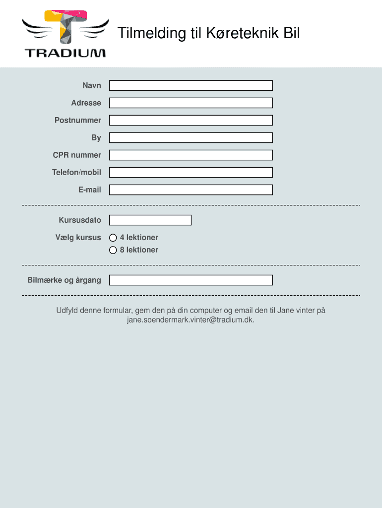 Til melding til K rethink BIL. Navy Address. Outnumber By. CPR number Telephone/Mobil. E-mail Kursusdato. V lg cursus 4 mentioned. 8 mentioned Film rue OG gangs