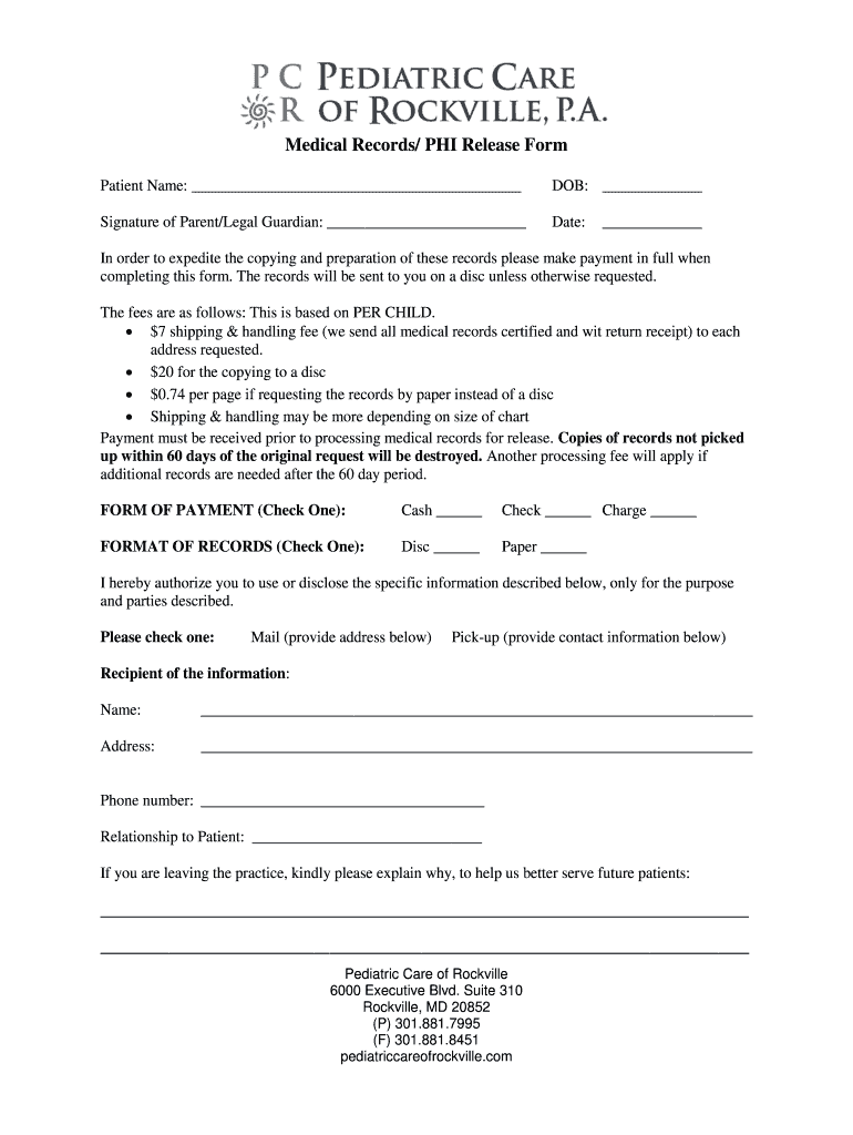 How to fill out medical records phi release