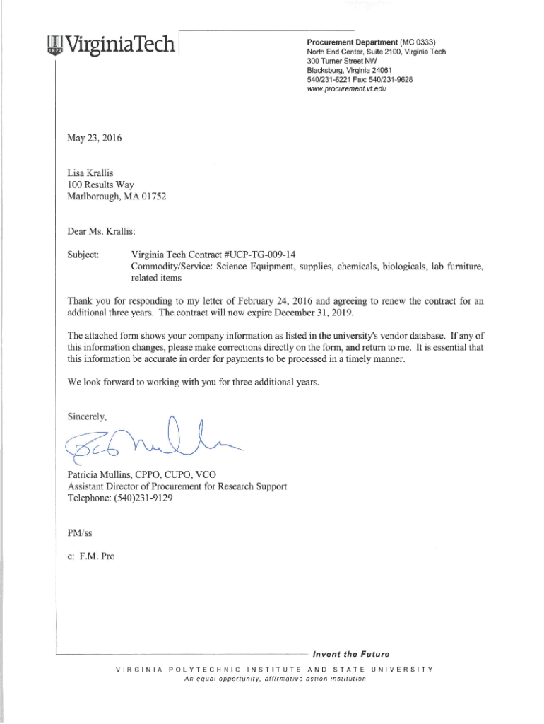 Get the free Virginia Tech Contract Renewal