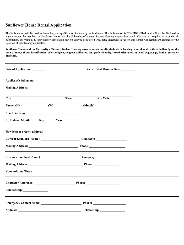 Get the free Sunflower bHouse Rental Applicationb - sfhouse