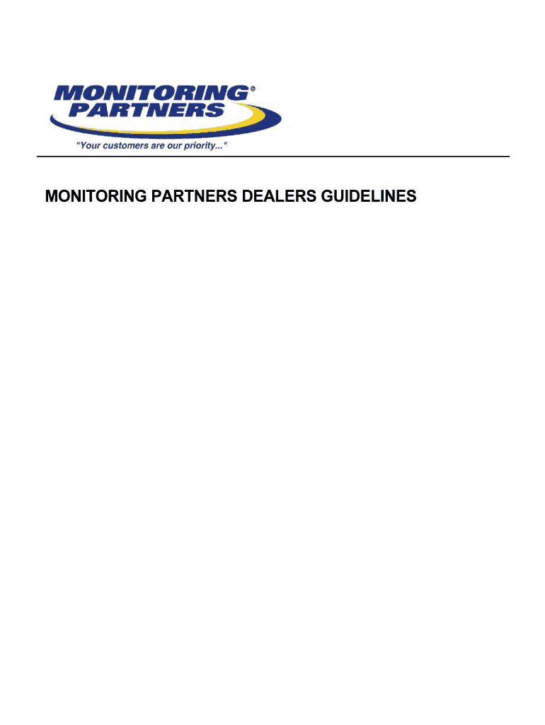 MONITORING PARTNERS DEALERS GUIDELINES DEALER PROCEDURES MANUAL DECEMBER 15, 2004, TABLE OF CONTENTS 1. MONITORING PARTNERS CONTACT INFORMATION ..............................................................................................