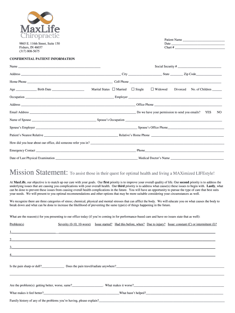 Get the free New Patient Paperwork - MaxLife Chiropractic