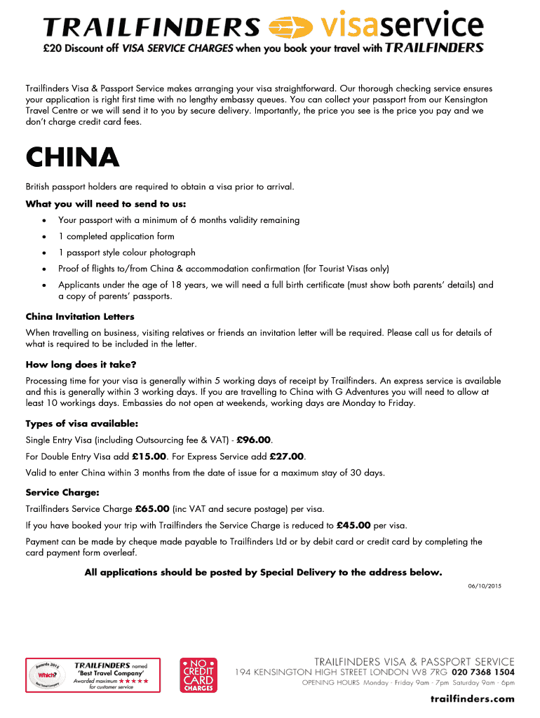 Completed forms can be submitted in person or via mail to Trailfinders Visa Service. You can also choose to submit online if using an electronic service like pdfFiller.