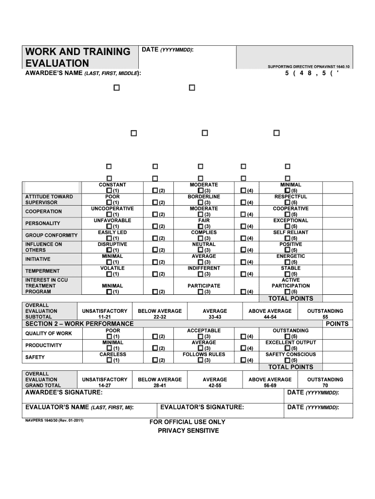 Get the free NAVPERS 164030 WORK AND TRAINING EVALUATION - public navy