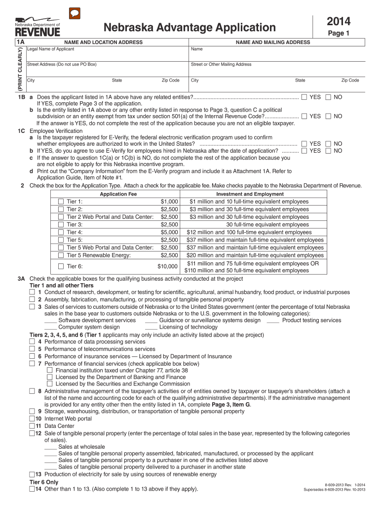 Individuals or businesses seeking economic development benefits in Nebraska may need to fill out the Nebraska Advantage Application 2014.