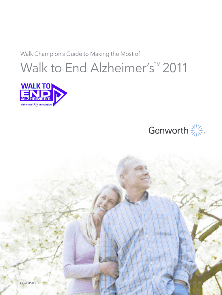 Walk Champions Guide to Making the Most of Walk to End Alzheimer's 2011 43041 06/03/11 Introduction Our long history with the Alzheimer's Association and its Memory Walk, now rebranded as Walk to