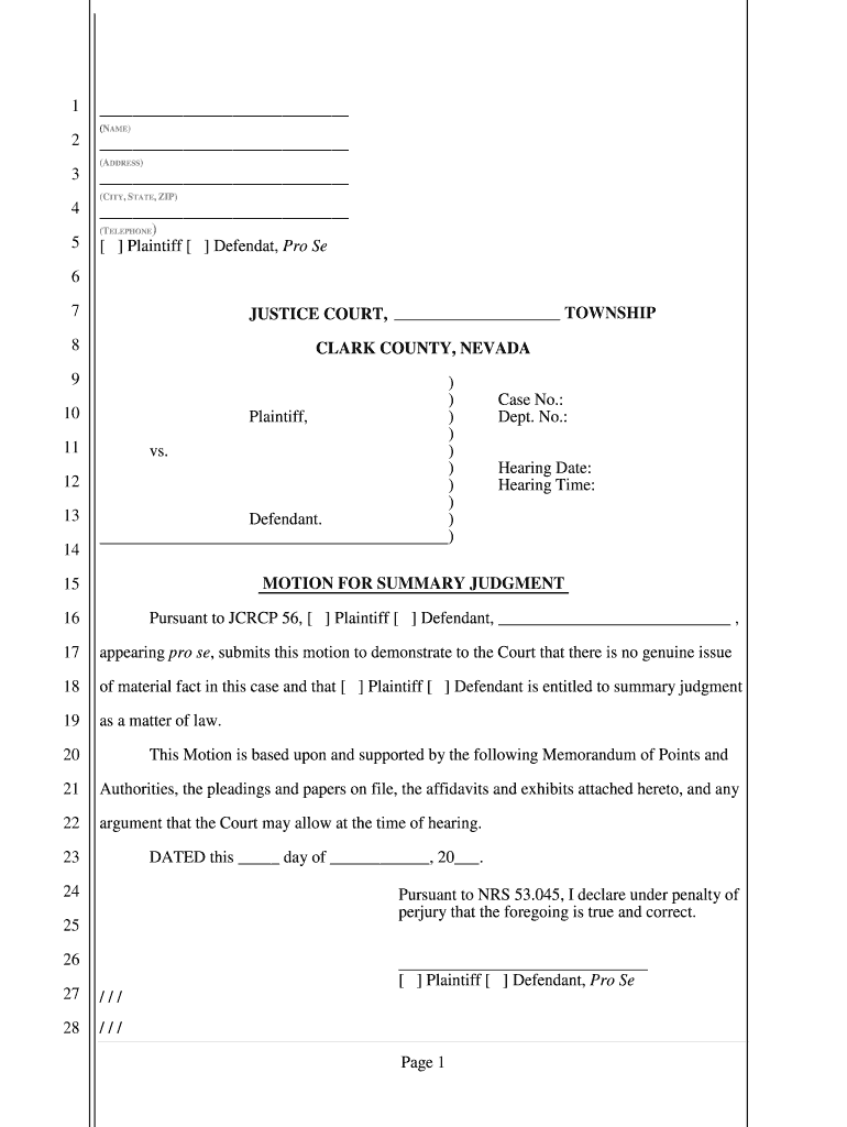 Both plaintiffs and defendants in a civil case can file a Motion for Summary Judgment in Nevada, seeking to have the court rule without a trial based on the absence of disputed facts.